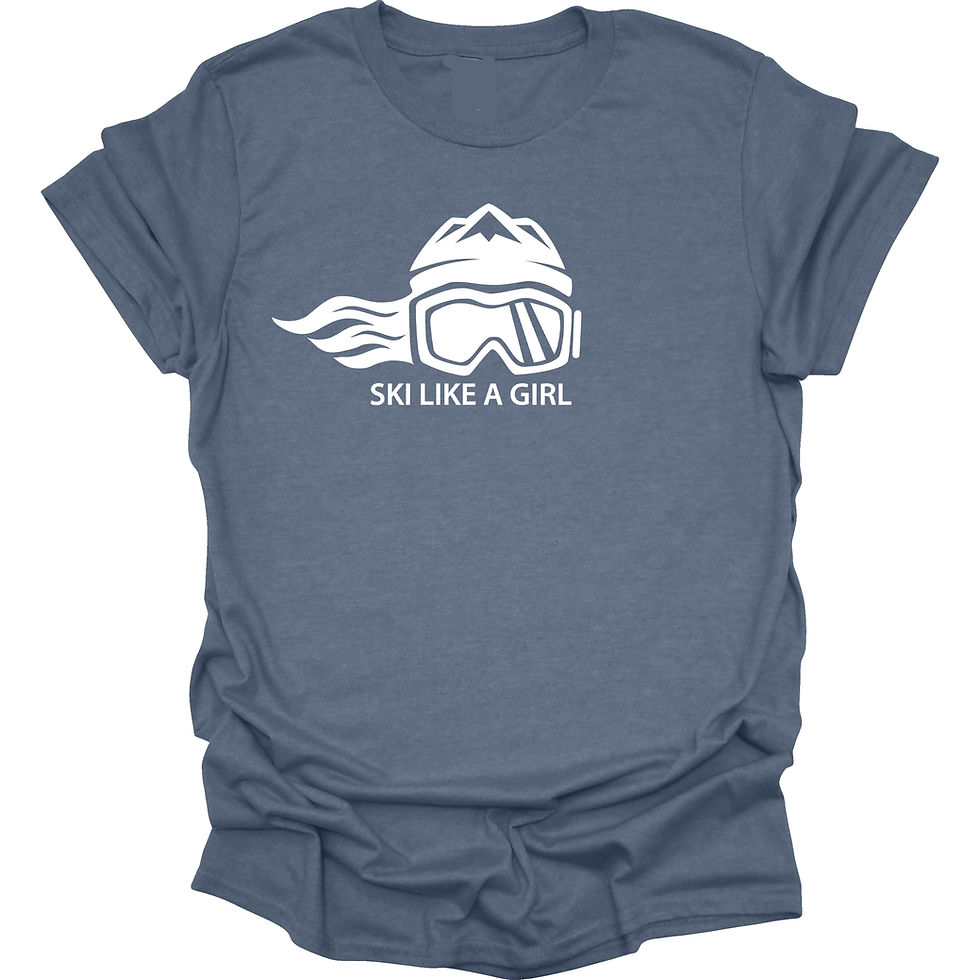 Ski Like A Girl Womens Short Sleeve T-Shirt - Heather Indigo Blue